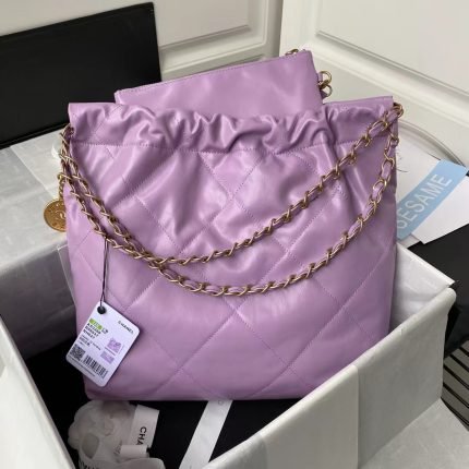 Chanel 22 AS3260 Small Bag Purple Calfskin Gold Hardware