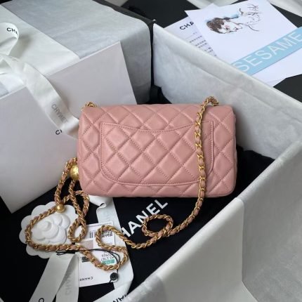 Chanel 23K AS1787 Mini Pearl Embossed Rectangular Flap Bag Lambskin Brushed Metal Hardware Dark Pink