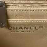 The interior is lined in gold metallic lambskin with a zip pocket with Chanel zipper and an open pocket underneath.