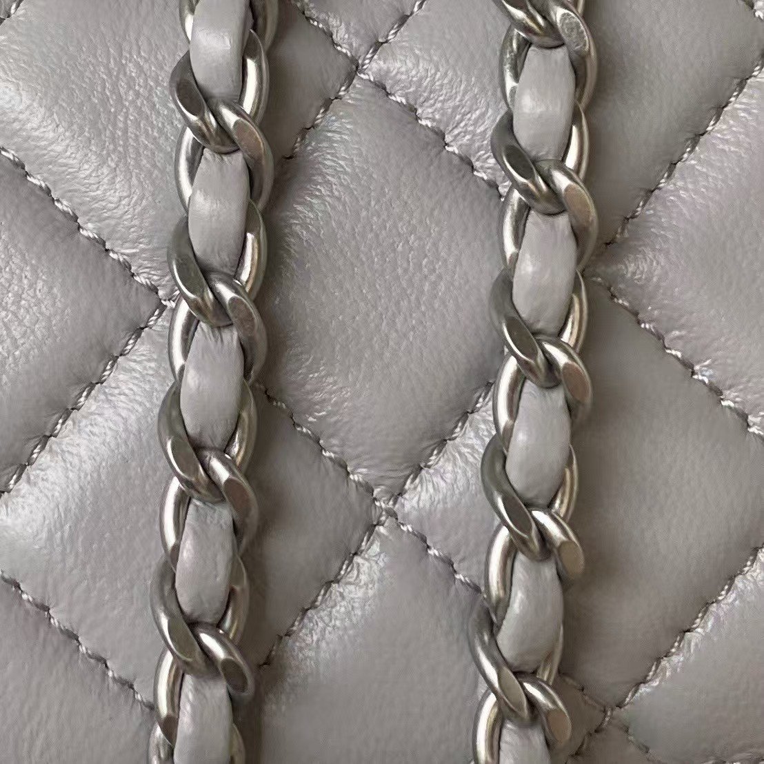 Be the first to review “Chanel 23K AS1787 Mini Pearl Embossed Rectangular Flap Bag Lambskin Brushed Silver Metal Hardware Light Grey” Cancel reply