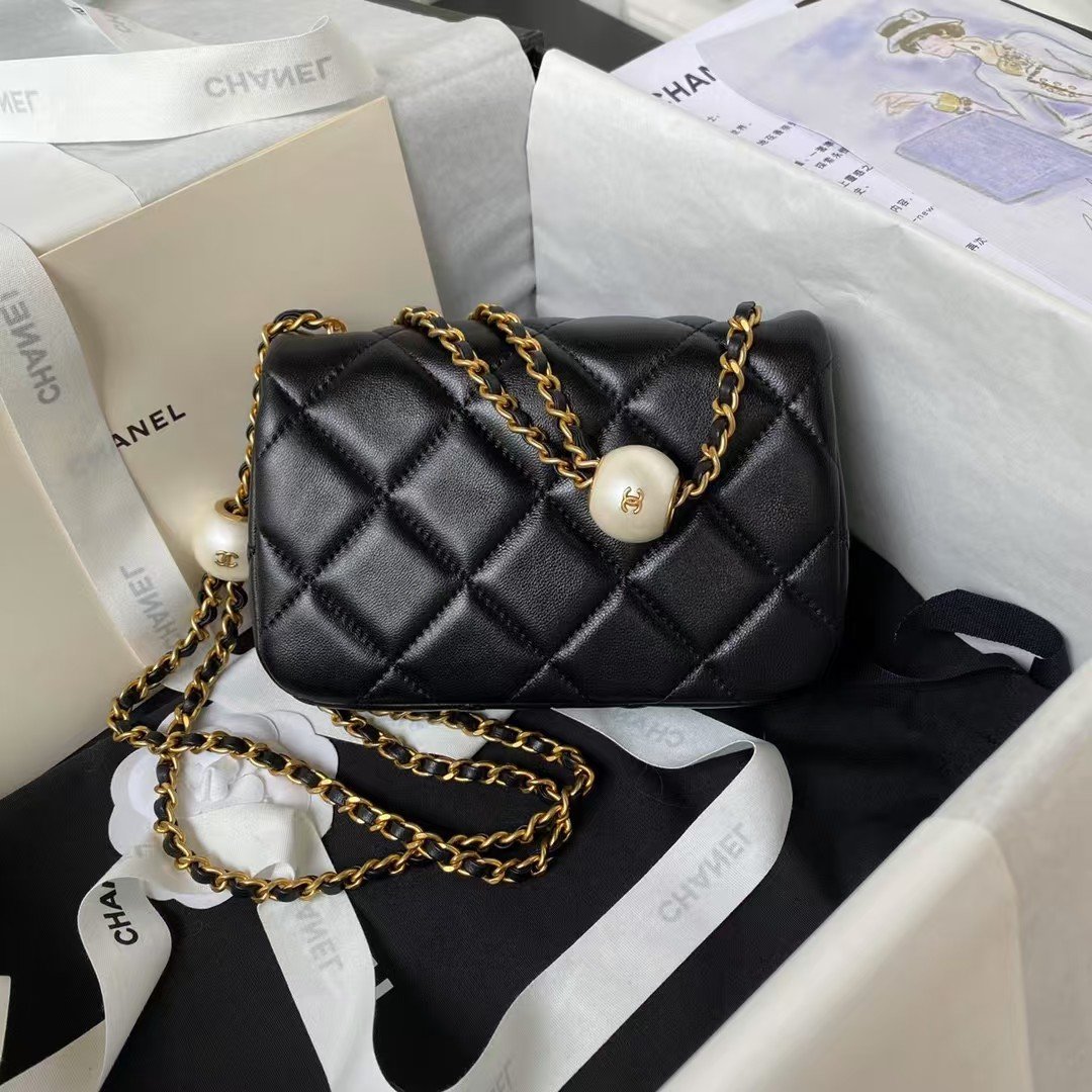 Be the first to review “Chanel AS4868 Mini Flap Bag Pearl Lambskin Faux Pearl & Gold Metal Black” Cancel reply