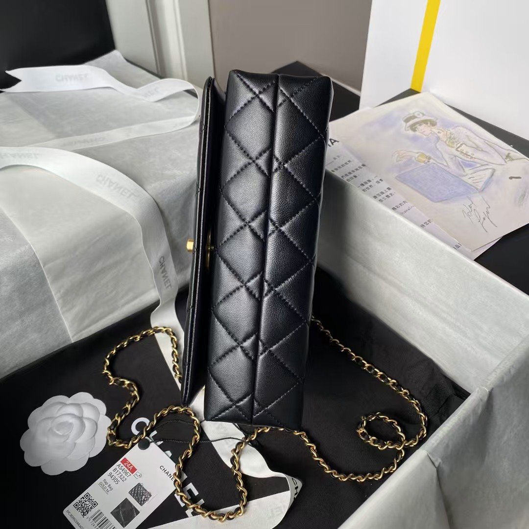 Be the first to review “Chanel AS4967 Small Flap Bag Shiny Lambskin Enamel & Gold Metal Black” Cancel reply