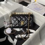 Be the first to review “Chanel AS5001 Mini Flap Bag Top Handle Shiny Lambskin Imitation Pearl & Gold Metal Black” Cancel reply