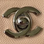 This medium classic double flap bag is crafted in light beige caviar leather with silver hardware, front flap with signature CC turnlock closure, half-moon back pocket, adjustable interwoven silver chain and light beige leather shoulder strap.