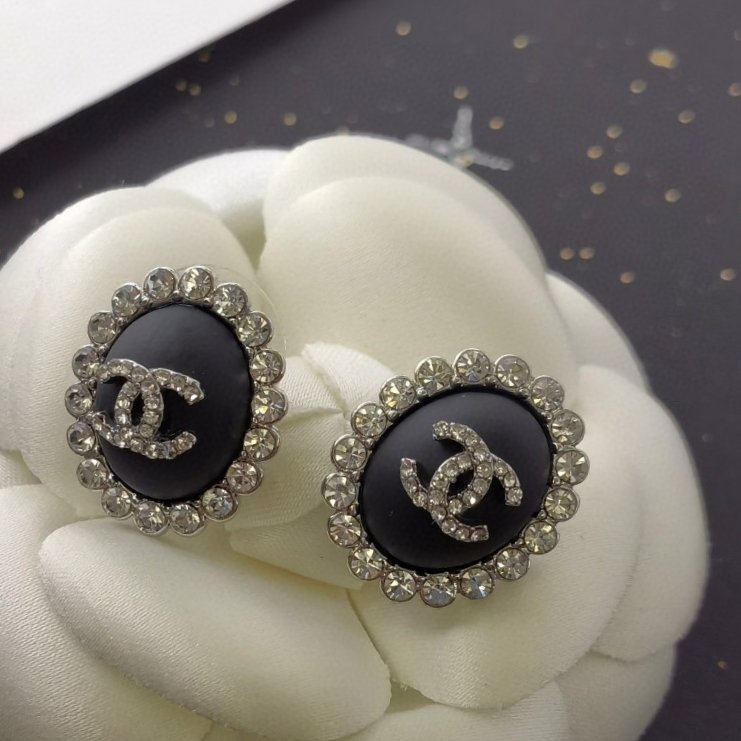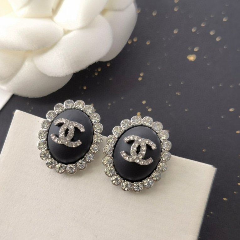 **Chanel Matte Obsidian & Crystal CC Stud Earrings**