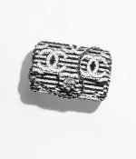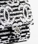 This vintage micro flap bag is crafted in black and white sequins, ribbed satin and leather with silver-tone hardware, tonal stitching, CC turnlock closure, interwoven silver-tone chain links and a black leather shoulder strap.