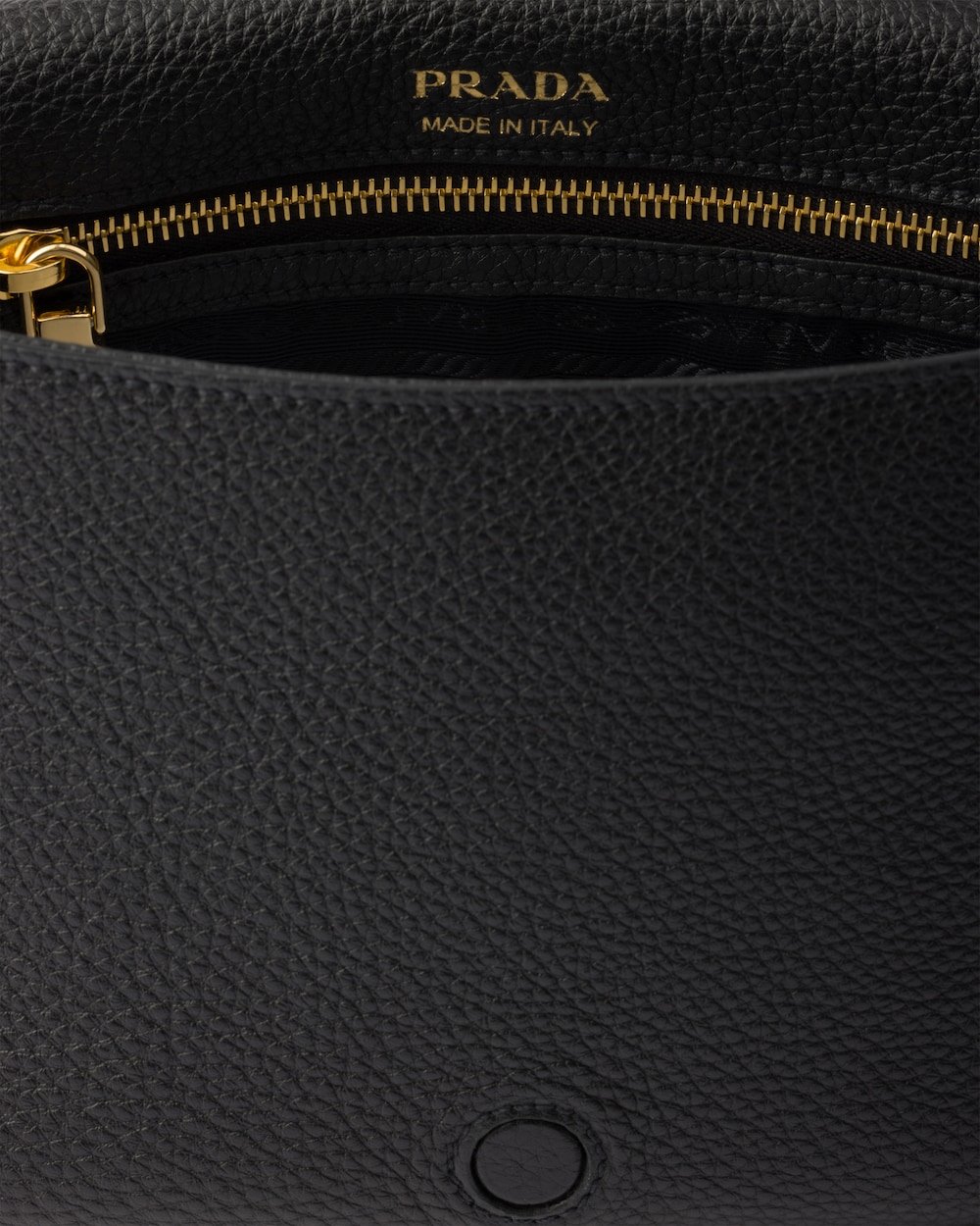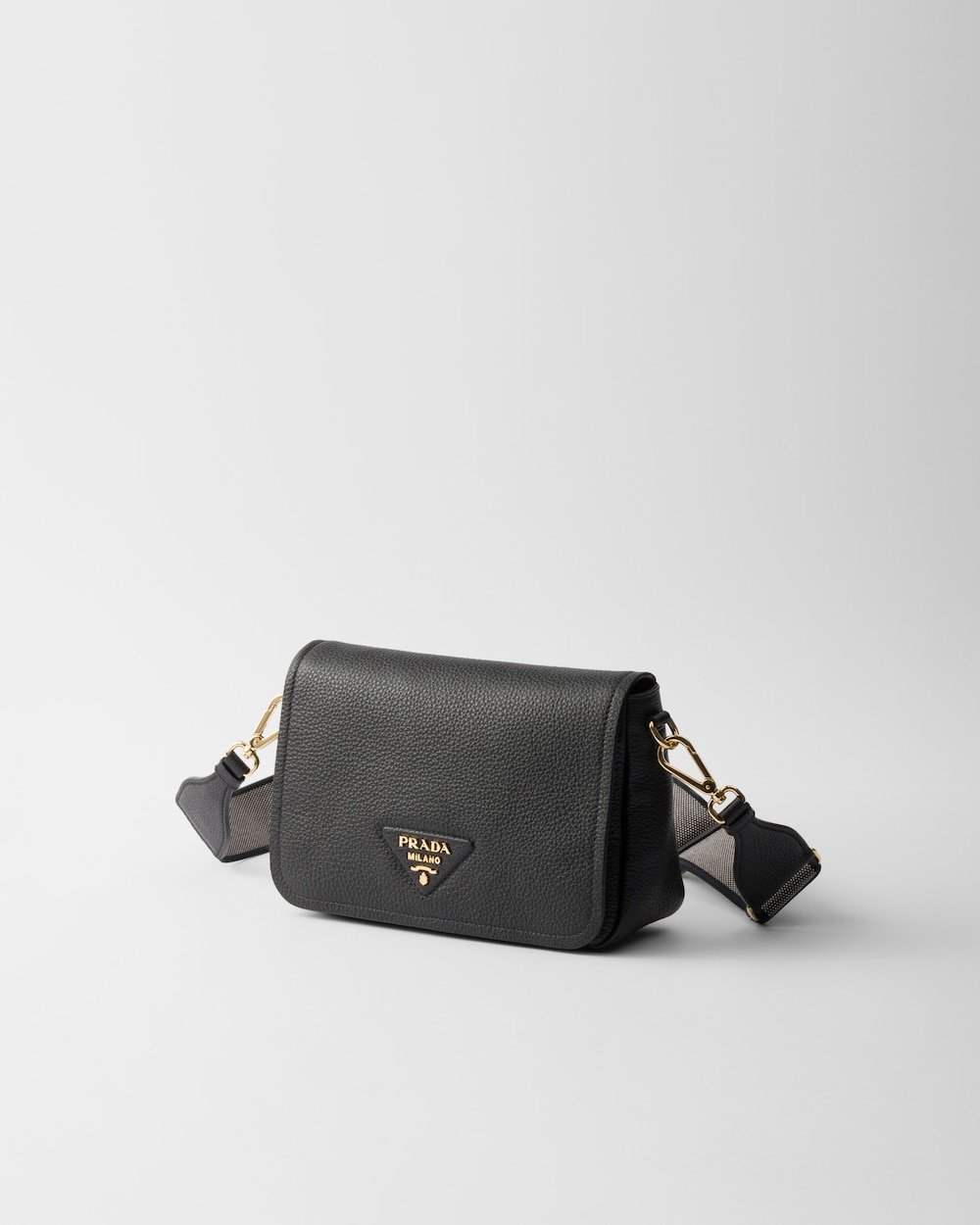 A modern, pragmatic design defines this leather shoulder bag, complete with a removable strap for versatile wear. The metal logo lettering adds a distinctive touch.