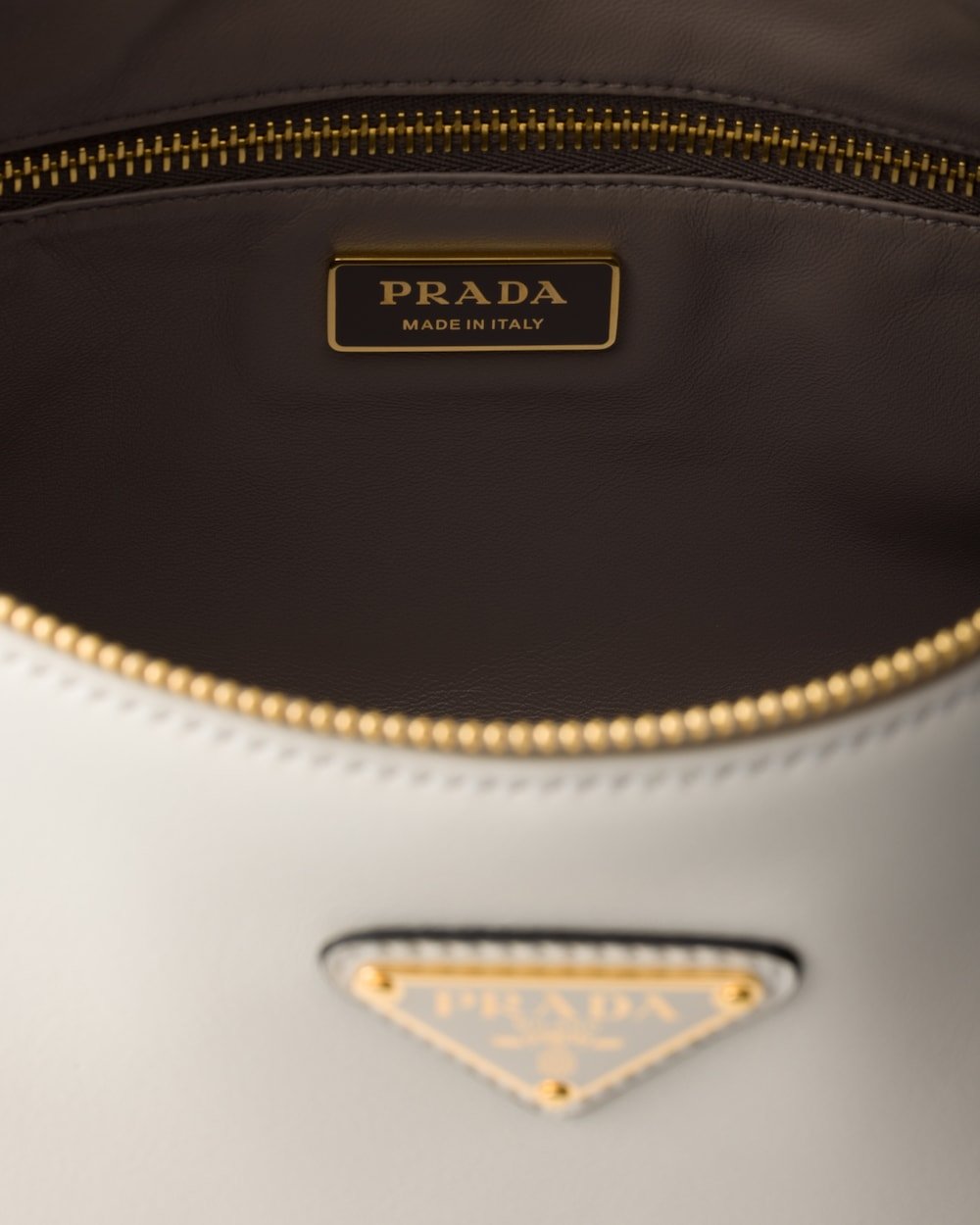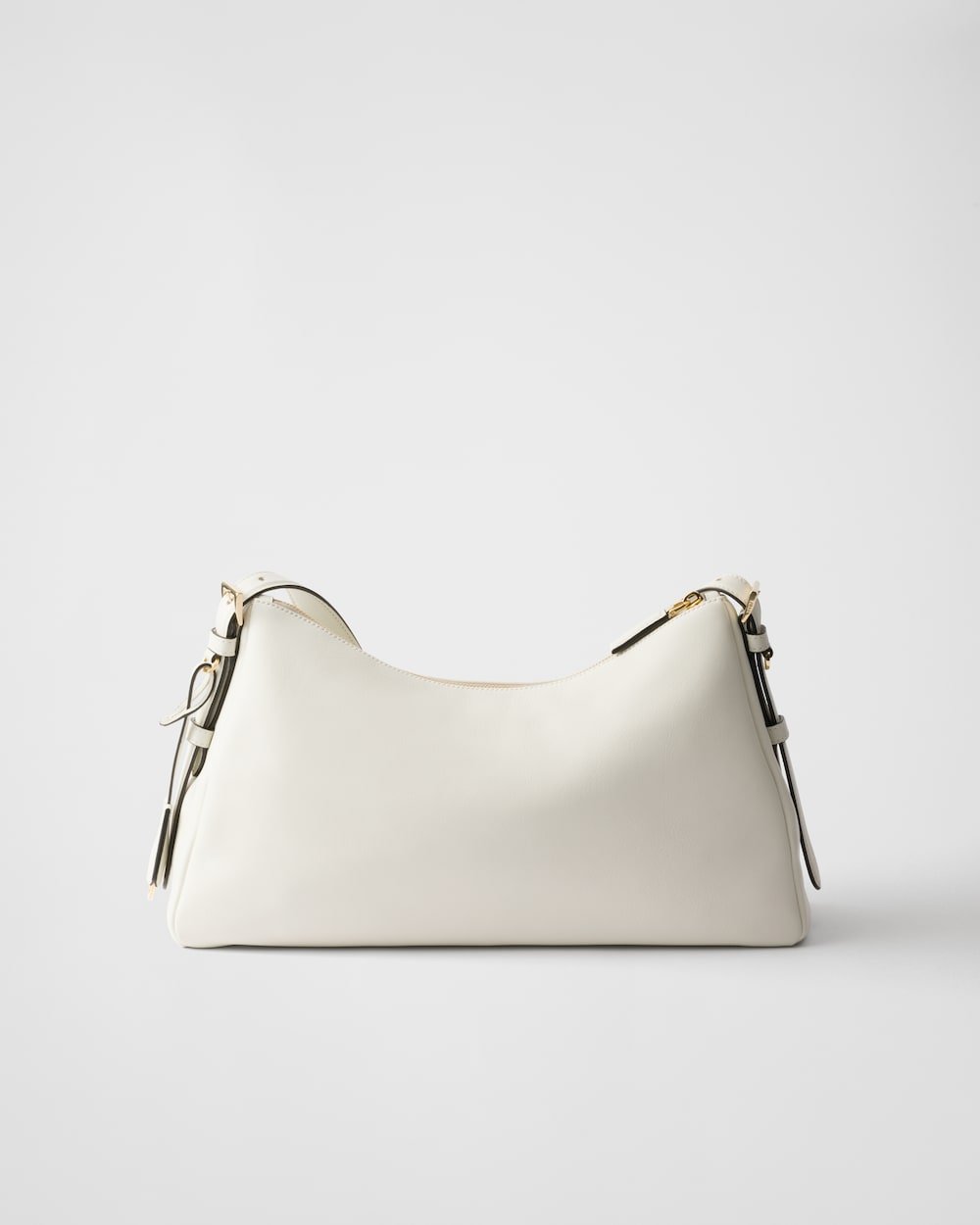 The sophisticated minimalism of the ’90s inspires the new Prada Aimée bag. The design evokes the instinctive gesture of holding a bag with its soft silhouette, created for effortless wear on the shoulders or cross-body.