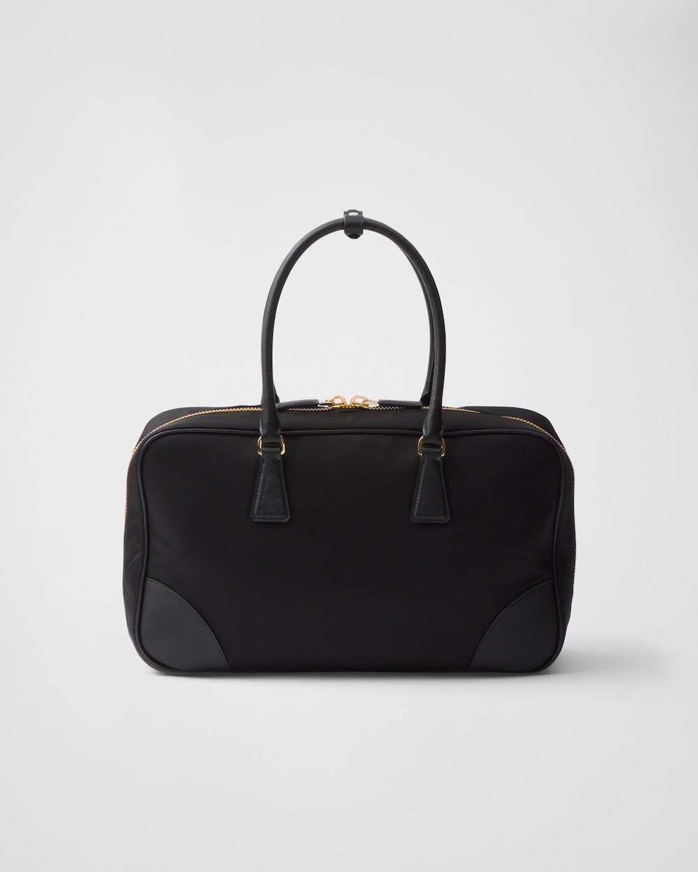 An archive silhouette with timeless appeal is presented in Re-Nylon, the sustainable evolution of a distinctive material of the brand. The two-handle bag made of regenerated nylon is enriched with Saffiano leather details in a perfect synthesis of Prada’s stylistic codes, able to subvert the traditional perception of luxury. Between the pragmatic touches and sophisticated details, the enameled metal triangle logo decorates the spacious accessory with its distinctive signature note.
