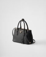 The sophisticated and timeless Prada Galleria bag combines the industrial precision and meticulous craftsmanship inherent in the brand’s DNA. Composed of over 80 individual pieces assembled by hand, the style celebrates the historic store opened in 1913 in Galleria Vittorio Emanuele II of Milan. The leather accessory, presented in a refined small version, is completed with the emblematic triangle logo.